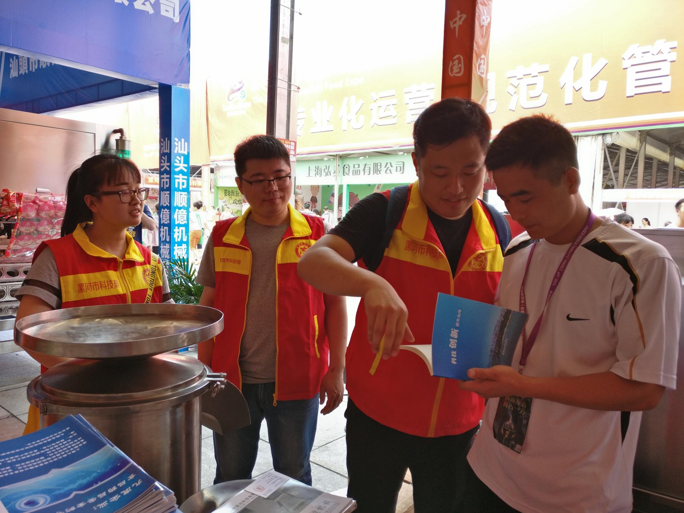 食博会活动期间,市科技局以食博会C门服务台为主要活动阵地展出宣传展板,发放相关知识手册和宣传彩页的同时,设置了便民服务咨询台,选派出4名志愿者深入展区向参展客商和参观群众就科技项目申报、高新技术企业申报、科技成果评定、防震减灾知识、专利申报与保护等问题解疑答惑并发放相关服务指南、知识手册和宣传资料;为更好的服务群众,强化服务效果,市科技局还组建了三个流动志愿服务队,深入会场及周边开展文明劝导、志愿引领等便民服务活动和会场清洁活动;市知识产权局在现场设置了知识产权维权援助举报投诉服务处,接受群众和参展厂商咨询和举报投诉,并派出执法人员对展会产品进行了统一走访检查,现场检查商品200余件,未发现有专利侵权产品。