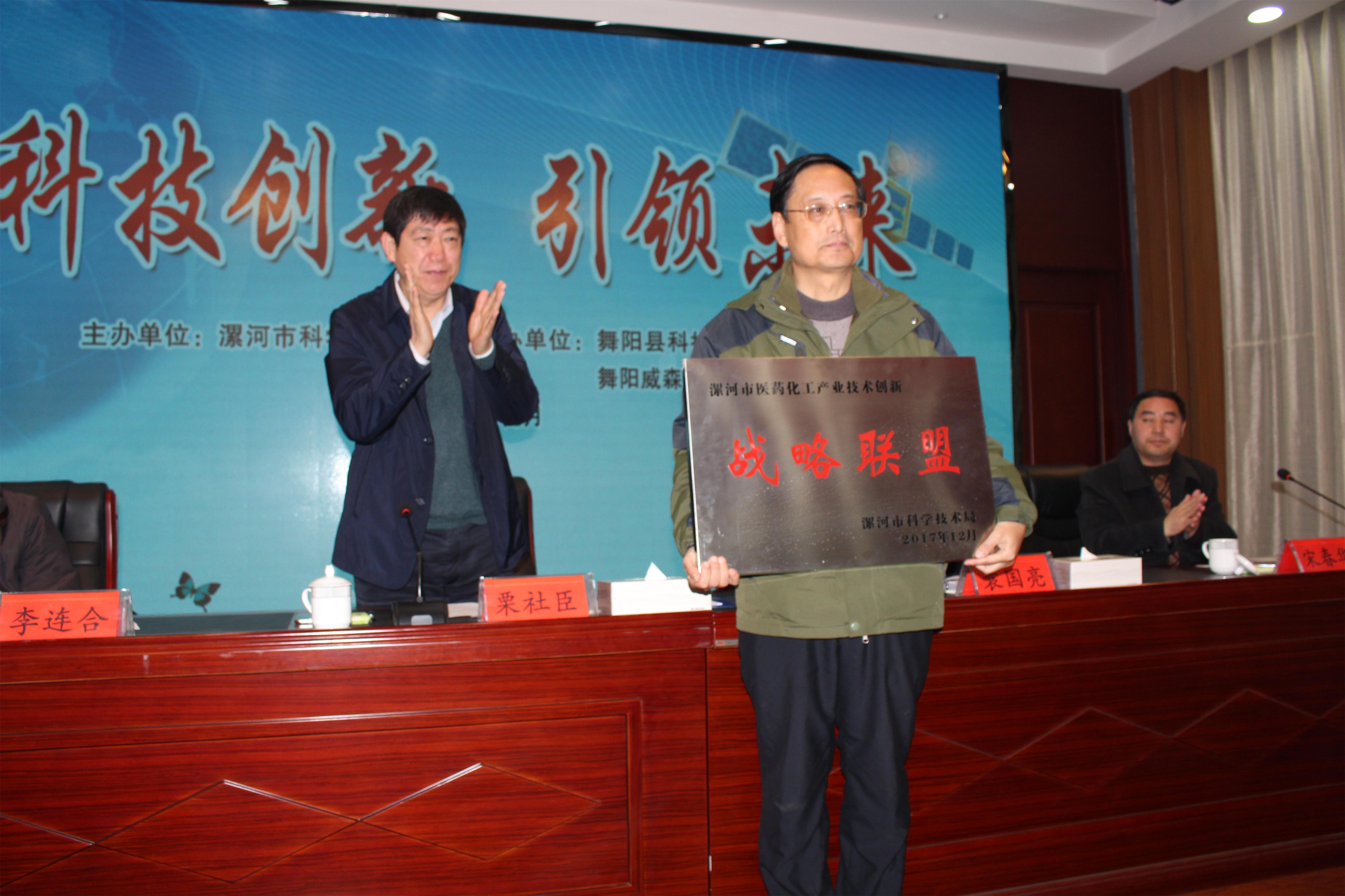 1月17日,漯河市医药化工技术创新战略联盟在舞阳县成立。漯河市人民政府副市长栗社臣出席成立大会并发表了讲话。市科技局党组书记、局长袁国亮出席了大会。漯河市医药化工产业技术创新战略联盟12家成员单位负责人和部分县、区科技局负责人等100多人参加了大会。